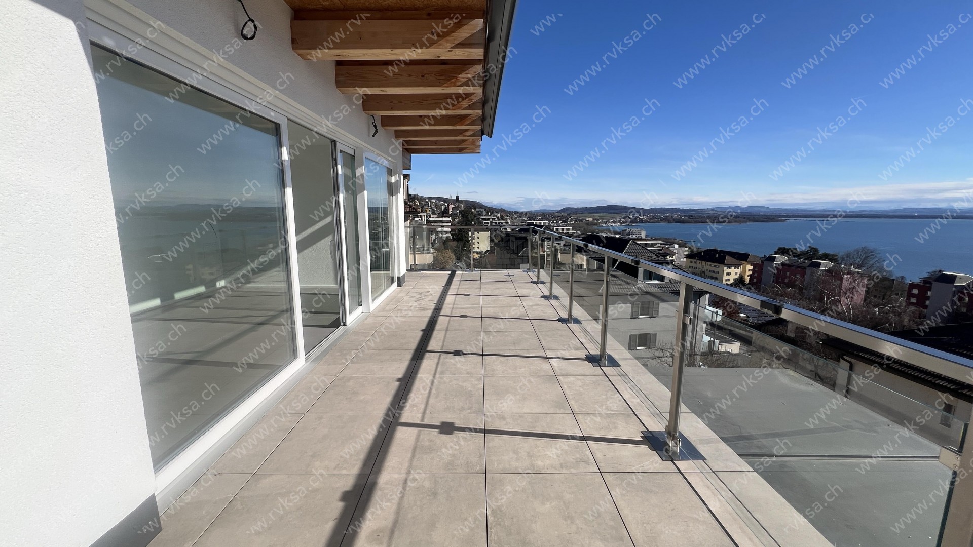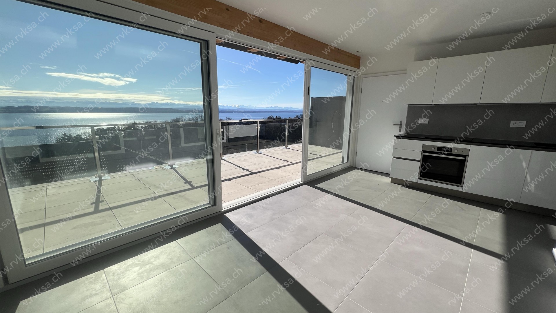 Appartement neuf en attique avec vue imprenable sur le lac et les Alpes. Cuisine ouverte sur séjour. Salle-de-douche/WC et une chambre. Magnifique terrasse d'environ 20m2. Proche de toutes les commodités (transports et commerces).